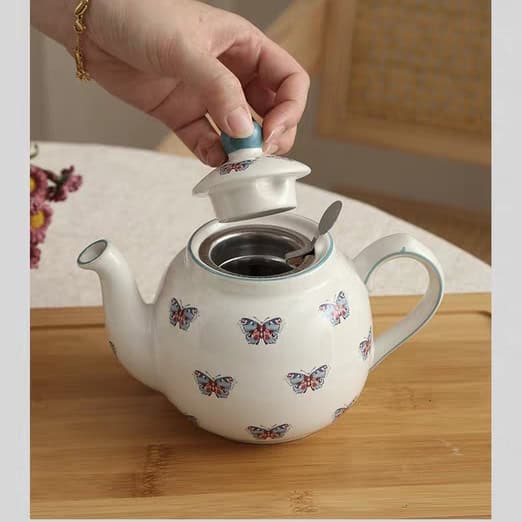 لكل عشاق الطبيعة والهدوء، طقم شاي الفراشات هو الرفيق الأمثل للحظاتك الخاصة. تصميمه المستوحى من الحدائق الإنجليزية يجعل كل رشفة شاي تبدو وكأنها نزهة وسط الزهور والفراشات، حتى وأنتِ في منزلك.
