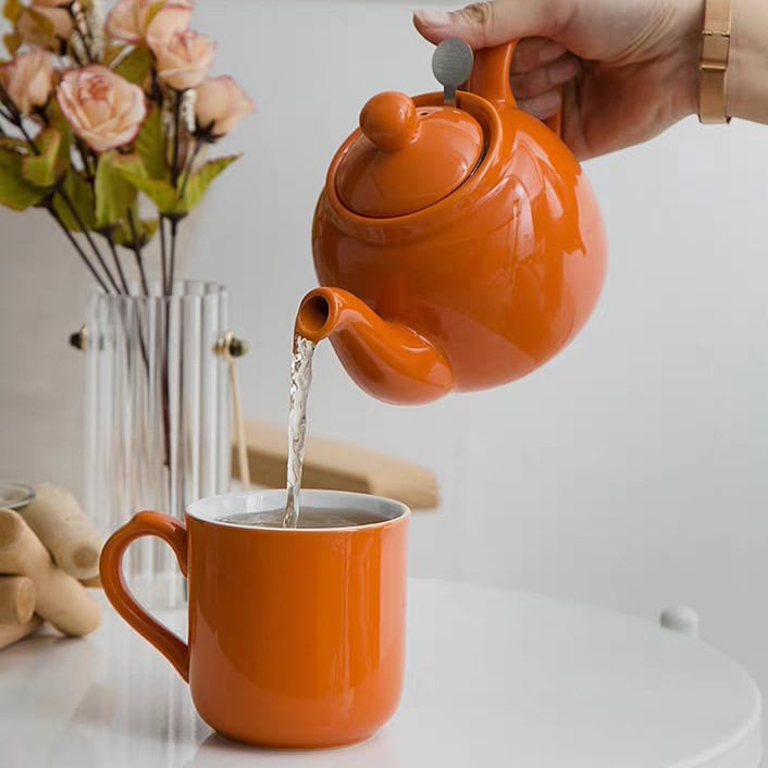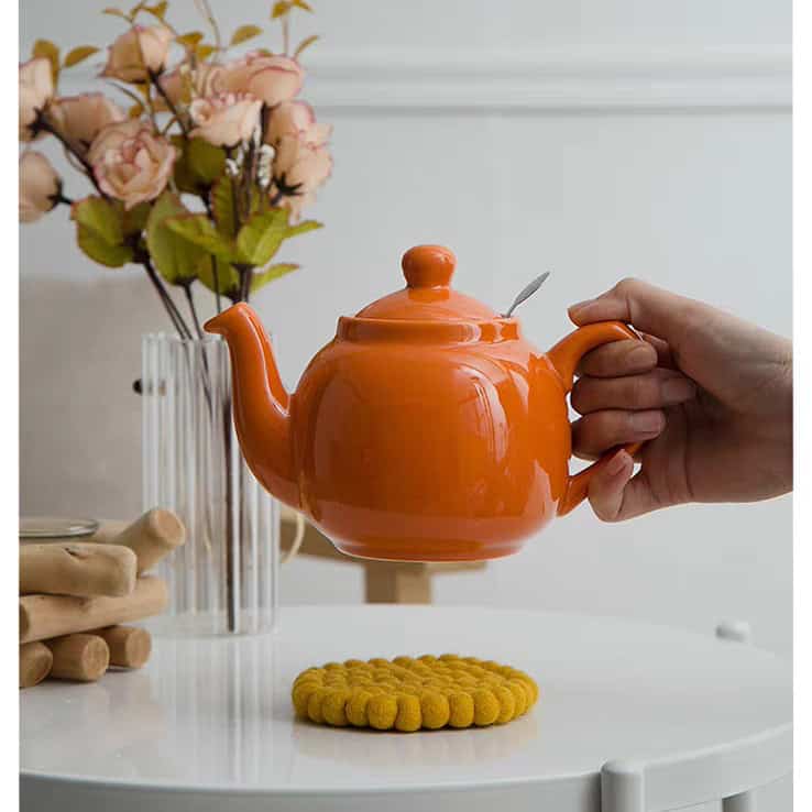 إذا كنتِ تبحثين عن طريقة سريعة لتغيير مزاج غرفتك، فإن إبريق London Pottery باللون البرتقالي هو الحل. هذا اللون المفعم بالحياة يعمل كـ “مضاد للاكتئاب” بصري، ويحول ركن الشاي إلى مساحة مليئة بالطاقة الإيجابية والدفء.