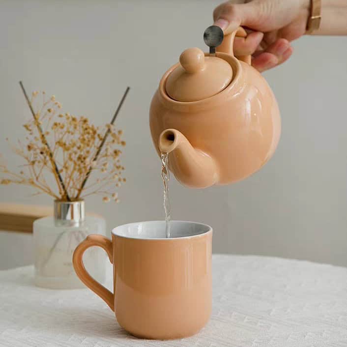 إذا كنتِ محتارة بين جرأة البرتقالي ورقة الوردي، فإن إبريق London Pottery باللون الخوخي هو الحل الوسط المثالي. هذا اللون “الشهي” يضفي لمسة من الحلاوة والدفء على مطبخك، ويذكرنا بألوان غروب الشمس الصيفية الهادئة.