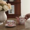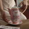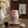 طقم متكامل لشخصين: يتكون من إبريق (600 مل) + كوبين (300 مل) + صحنين + فلتر ستيل. الحجم المثالي لمشاركة الشاي مع صديقة مقربة.