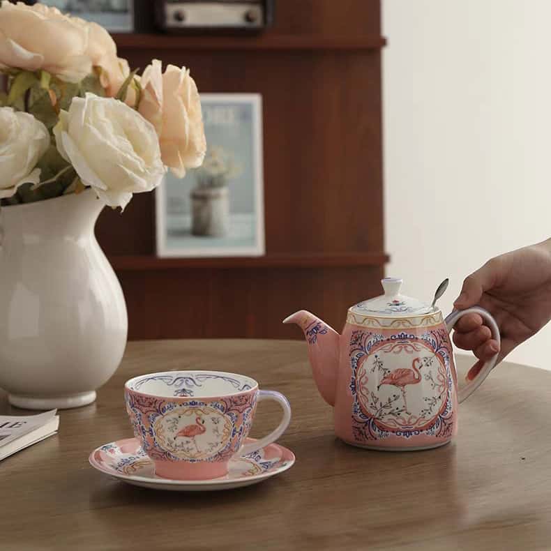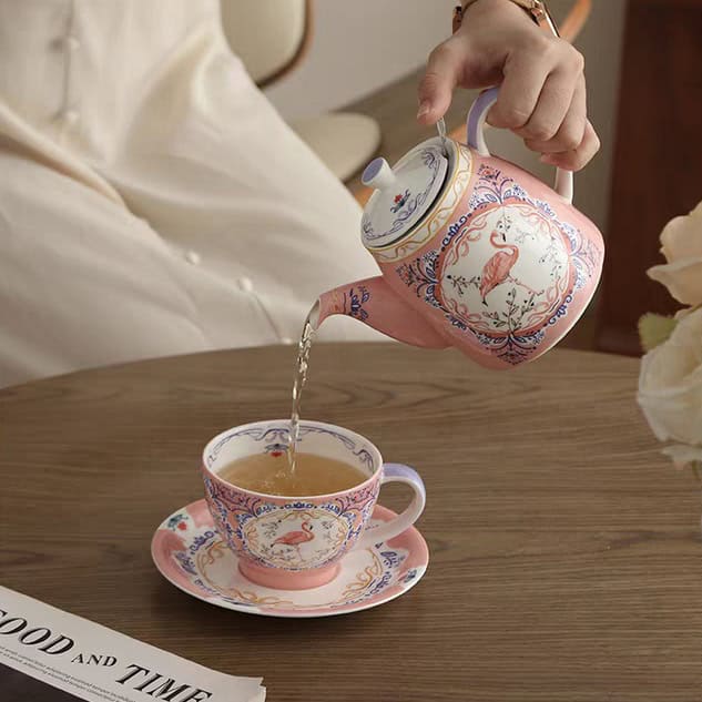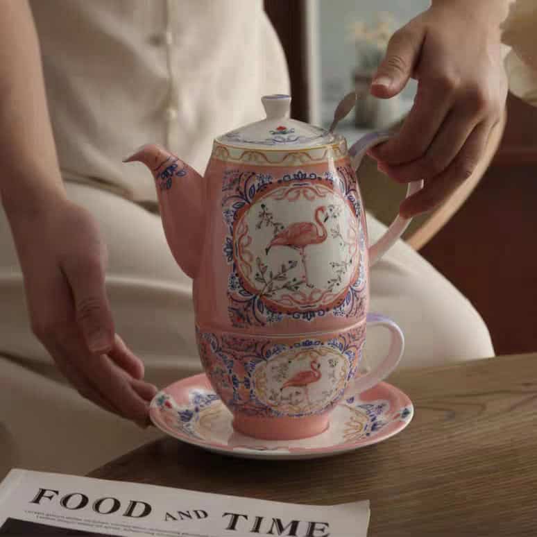 إذا كنتِ تبحثين عن التميز والنعومة، فإن طقم شاي “الفلامينجو الوردي” من London Pottery صُمم خصيصاً لكِ. هذا الطقم يكسر القواعد التقليدية بدمجه بين فخامة الزخارف الكلاسيكية وحيوية طائر الفلامينجو، وكل ذلك مغلف بلون وردي يأسر القلوب.