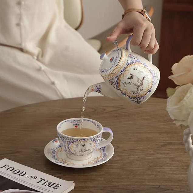 جلسة شاي راقية: استمتعي بشرب الشاي في أكواب مصممة بعناية لراحة يدك، مع إبريق يحفظ الحرارة ويصب بسلاسة، لتكون تجربتك مريحة بقدر ما هي جميلة.