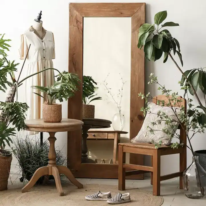 مرايا خشب طويلة صنوبر طبيعي مرنة جدارية وأرضية