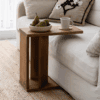 تصميم موفر للمساحة (Slide-Under Design): القاعدة الهندسية مفتوحة من جانب واحد لتسمح للطاولة بالانزلاق أسفل قاعدة الكنب أو السرير، لتقريب السطح العلوي منكِ أثناء العمل أو شرب القهوة.