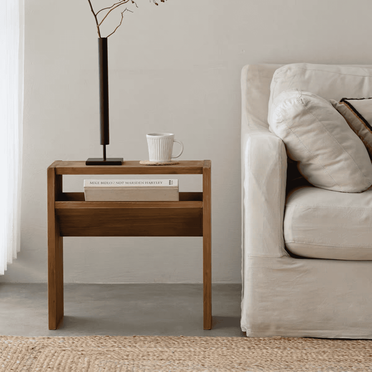 حامل كتب مدمج (Magazine Rack): تتميز برف مائل مبتكر يسمح لكِ بعرض كتبك المفضلة أو المجلات الحالية بشكل جمالي ومنظم، مما يغنيكِ عن شراء حامل كتب منفصل.
