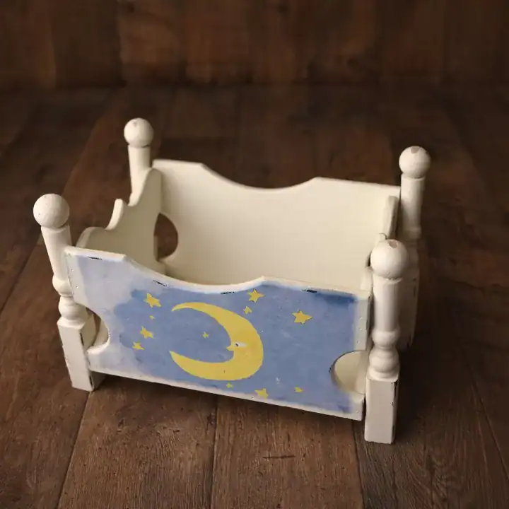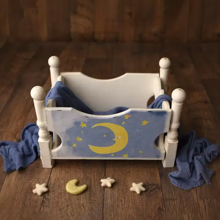 سرير تصوير مواليد خشبي – تصميم “ليلة النجوم والقمر” (Moon & Stars Wooden Crib Prop)