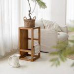في غرفة المعيشة (Low Side Table): استخدميها كطاولة جانبية منخفضة لحمل المجلات والنباتات، أو ضعي فوقها وسادة لتتحول إلى مسند قدم مريح أمام الكنب.
