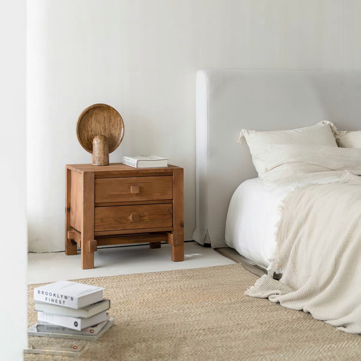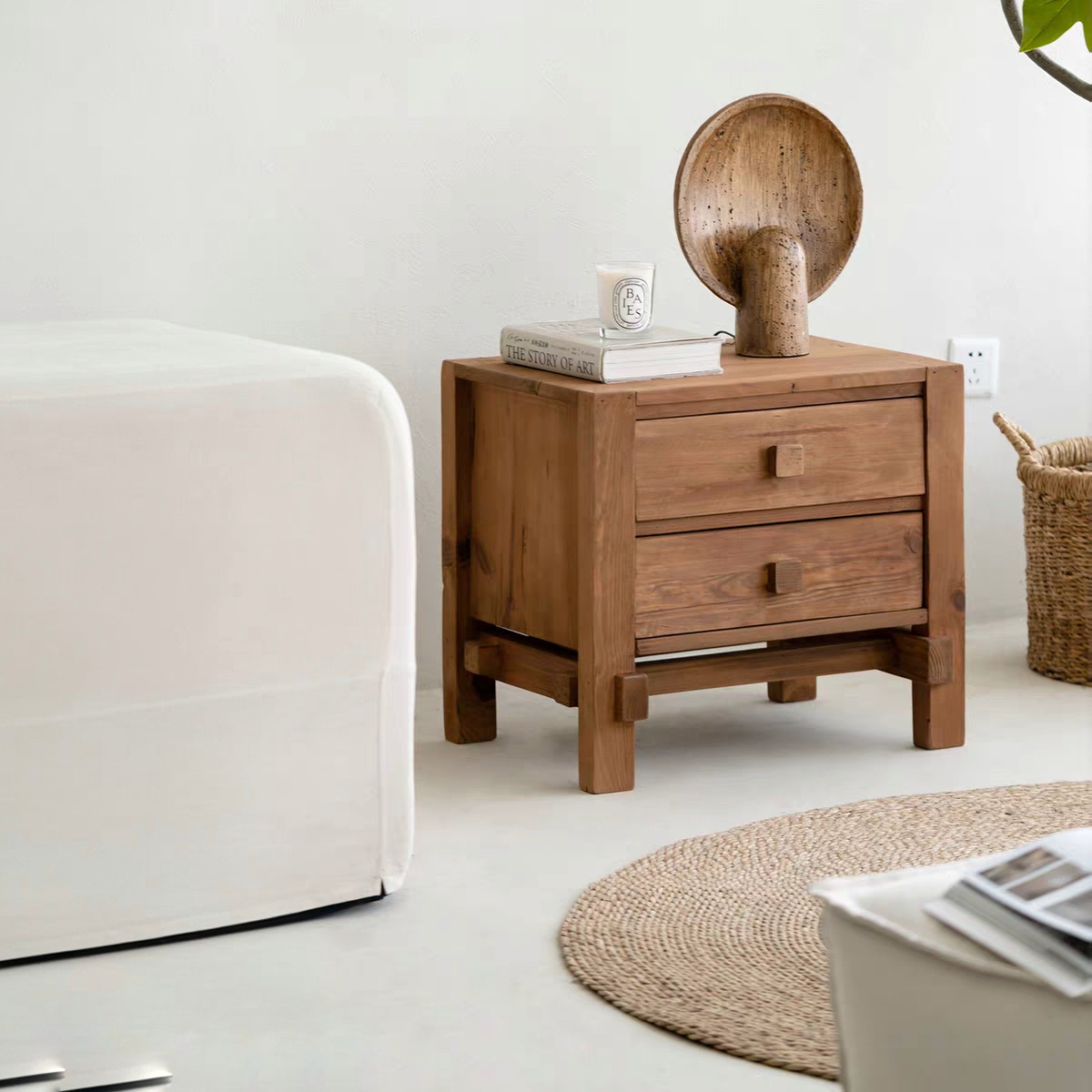 غرفة النوم هي ملاذكِ الأخير في نهاية اليوم، وتستحق أثاثاً يبعث على السكينة. الكومدينة الخشبية ذات الدرجين ليست مجرد صندوق تخزين، بل هي قطعة أثاث “تتحدث” لغة الطبيعة. تصميمها القوي والبسيط يجعلها تليق بأي سرير، سواء كان كلاسيكياً أو مودرن.