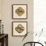 تنسيق الحائط الفني (Gallery Wall): ادمجيه مع براويز خشبية بأحجام مختلفة وصور طبيعية أخرى؛ فالمقاس المربع (35 سم) يعمل كقاعدة متينة لتنظيم الحائط بأسلوب “البوهو شيك” الراقي.