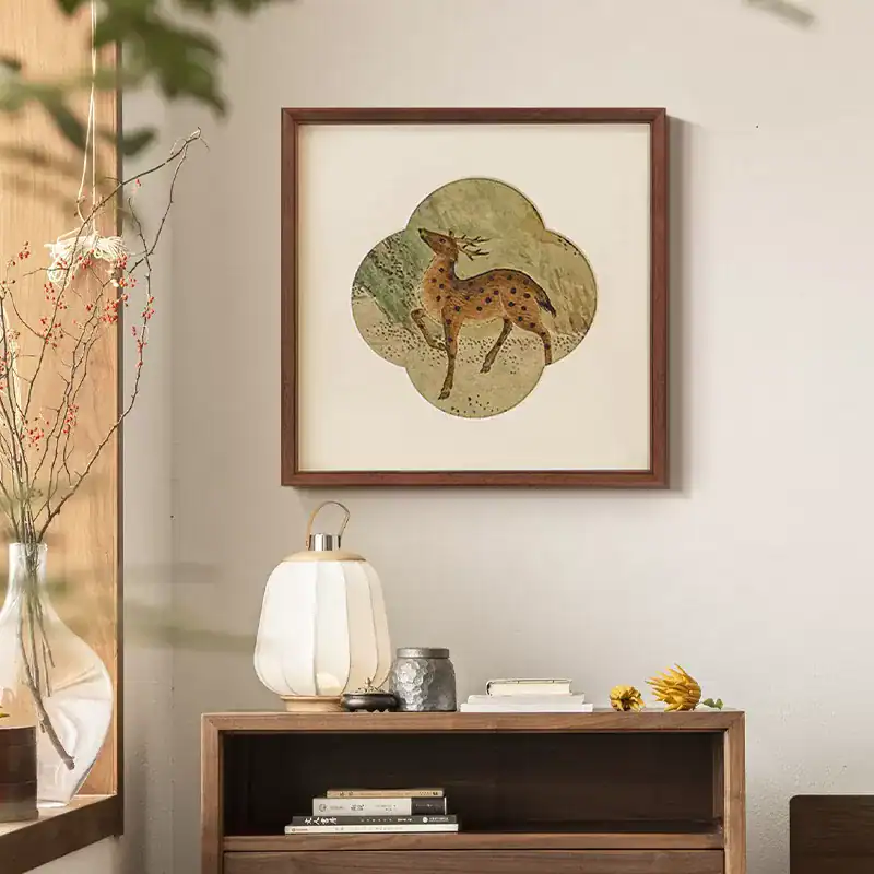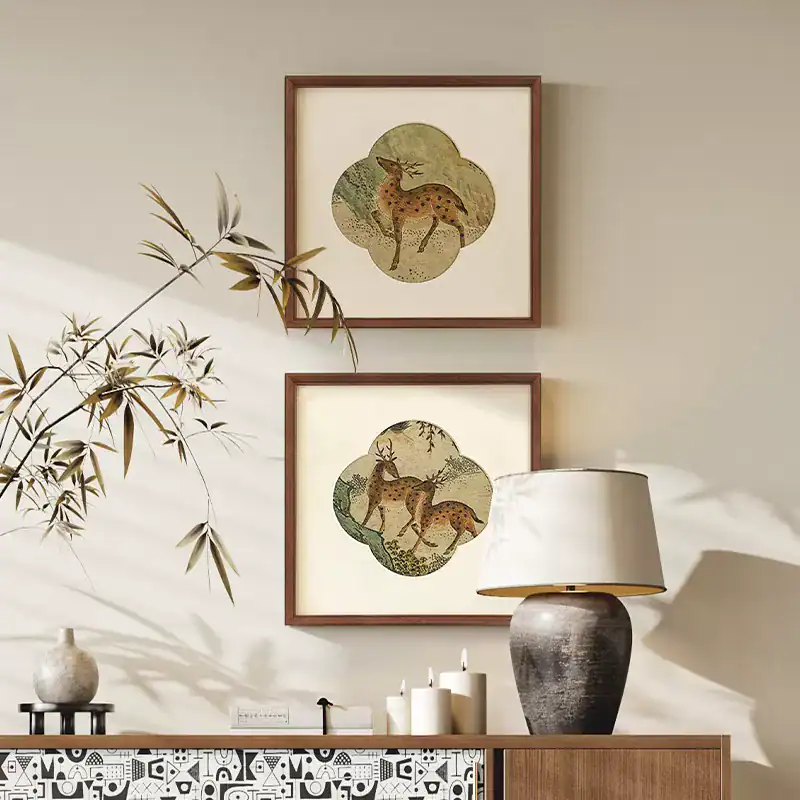 تصميم شرقي كلاسيكي: يتميز البرواز برسومات لغزلان تحاكي الفن الصيني التقليدي، مرسومة بألوان ترابية ودرجات خضراء هادئة تريح الأعصاب.