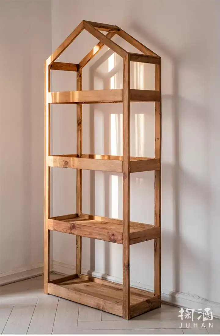تصميم يحتضن مقتنياتك: الشكل المثلثي العلوي (السقف) يعطي إحساساً بالاحتواء والدفء. إنه ليس مجرد مكان للتخزين، بل منصة عرض تجعل أي شيء يوضع عليها يبدو أجمل وأرقى.