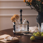 قدمي ضيافتك بأسلوب راقٍ ومنظم مع طقم القوارير والستاند الخشبي من La Tulipe.