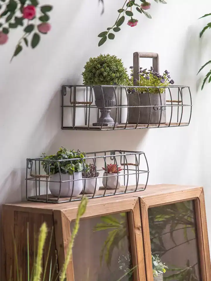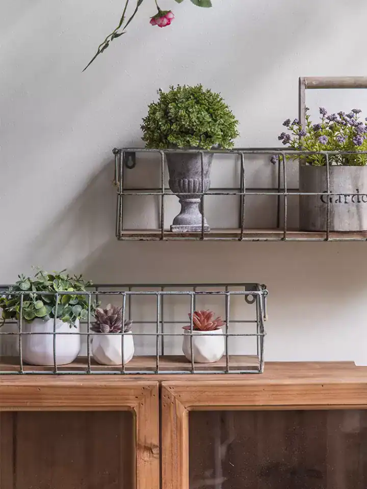 الخامة: شبك معدني (تشطيب ريفي) + قاعدة خشبية.