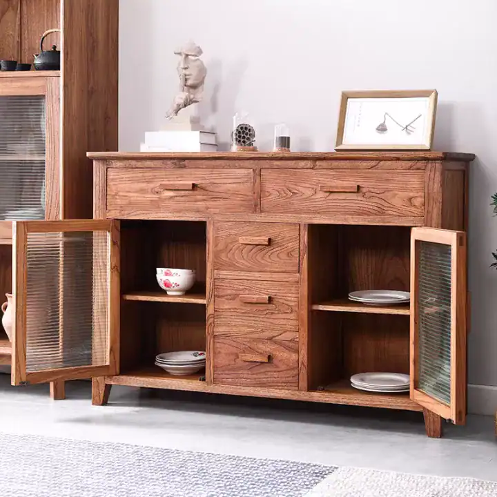 بوفيه لغرف الطعام: يُعد مثالياً لتخزين الأواني وأدوات التقديم؛ حيث تمنح الخزائن الزجاجية لمسة أناقة دون إظهار محتوى التخزين بوضوح، مما يحافظ على ترتيب المكان.