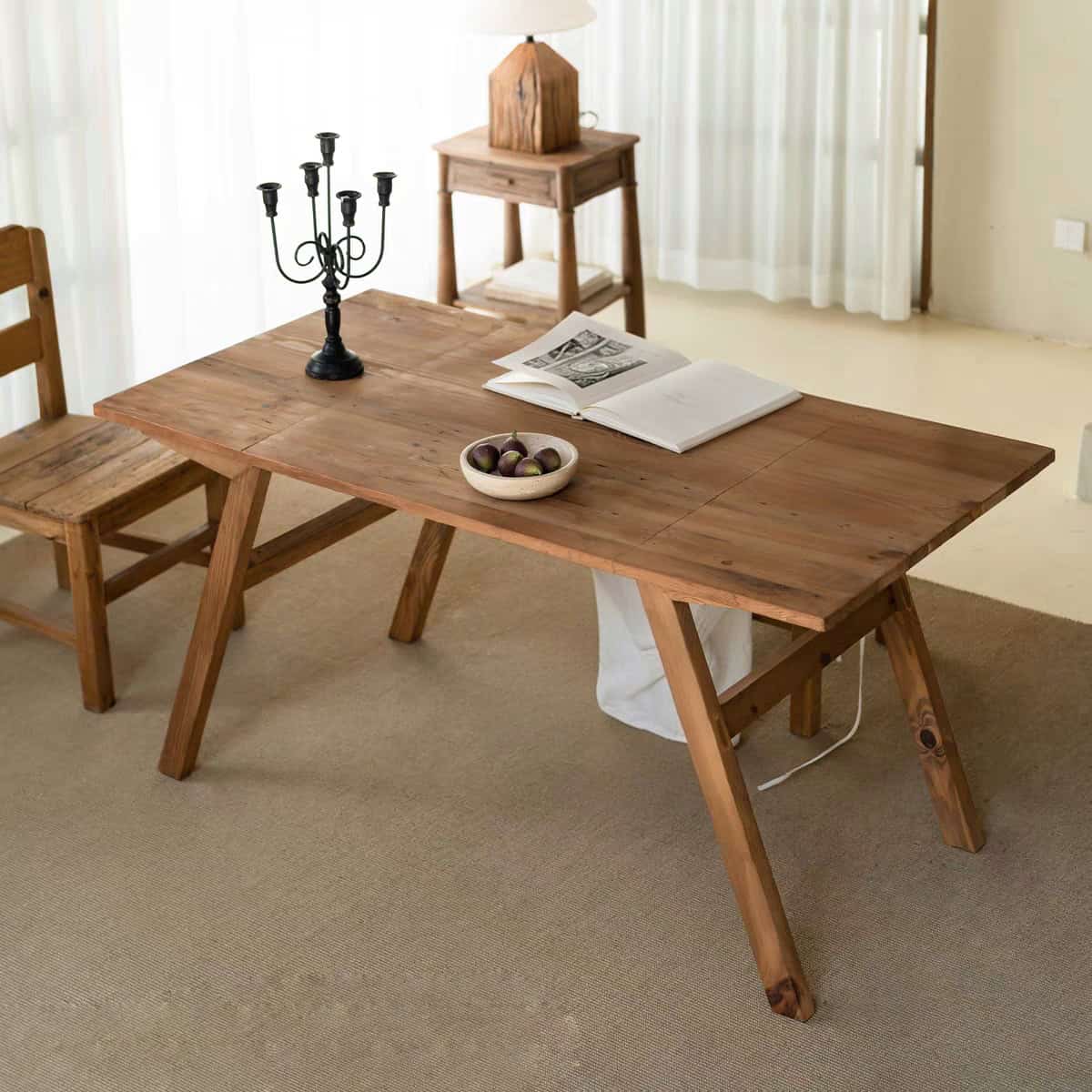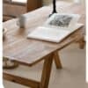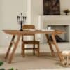 خامة تعيش معك: على عكس الطاولات التجارية الخفيفة، هذه الطاولة مصنوعة من الخشب الطبيعي الذي يتحمل الاستخدام اليومي، ويتميز بملمس غني ومظهر يزداد جمالاً مع مرور الوقت.