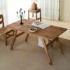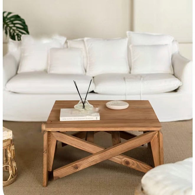 هيكل قوي ومستقر: تعتمد في وضعية الطعام على أرجل مائلة ومتينة تضمن ثباتاً عالياً أثناء تناول الطعام أو العمل، بينما تبدو ككتلة خشبية فنية متماسكة في وضعية الطاولة المنخفضة.