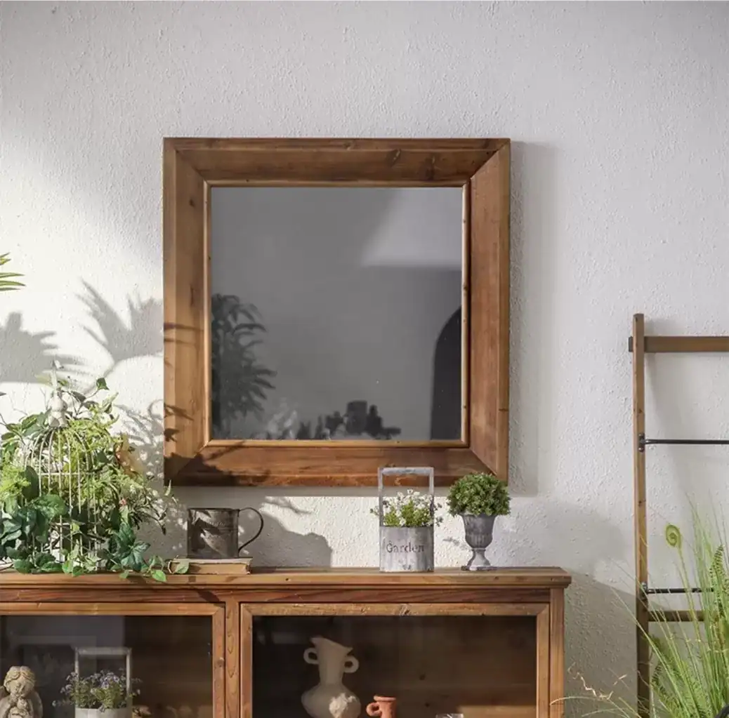 مرايا جدارية خشب طبيعي – تصميم ريفي مربع (80×80 سم)