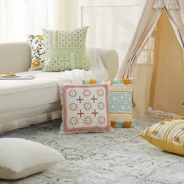 تنسيق ديكوري متكامل: صُممت هذه القطع لتكون مثالية للتنسيق ضمن مجموعات “مخدات ديكور” متنوعة؛ حيث يمكنكِ دمج النقوش الزهرية مع الهندسية بألوان الباستيل للحصول على إطلالة متناغمة ودافئة.