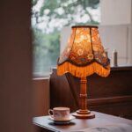 إذا كنتِ من عشاق الديكور الكلاسيكي الثقيل أو الستايل “الأكاديمي” (Dark Academia)، فإن هذه الأبجورة صممت خصيصاً لكِ. أبجورة القماش المشجر مع الشراشيب هي قطعة “Statement” تضيف فوراً وزناً وعمقاً للمكان، وتعتبر مثالية لكسر رتابة الغرف الحديثة بلمسة من عبق التاريخ.