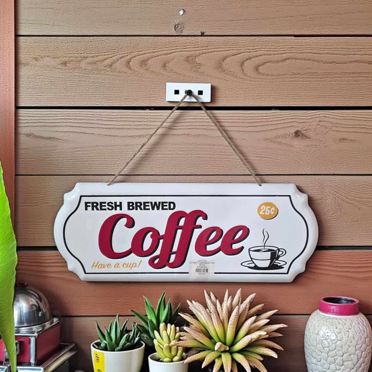 الانطباع الأول يدوم، وهذه اللوحة المعدنية المعلقة تضمن أن يكون انطباع زوارك مليئاً بالبهجة. تصميمها المستوحى من لافتات المحلات في الخمسينات يضيف طابعاً من “النوستالجيا” والأناقة غير المتكلفة إلى أي مساحة.