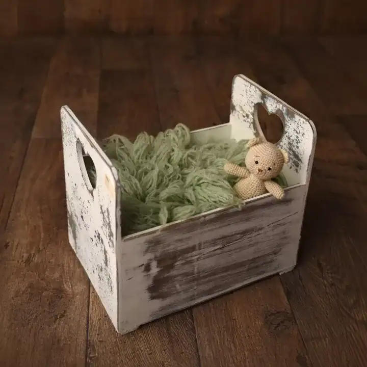 وضعية “كيس البطاطس” (Potato Sack Pose): بفضل جدرانه المرتفعة، يساعد هذا الصندوق في دعم الطفل في وضعية الجلوس أو “كيس البطاطس” (مع مراقبة السلامة طبعاً). استخدمي حشوات داعمة وفرو ناعم لراحة الطفل.