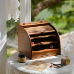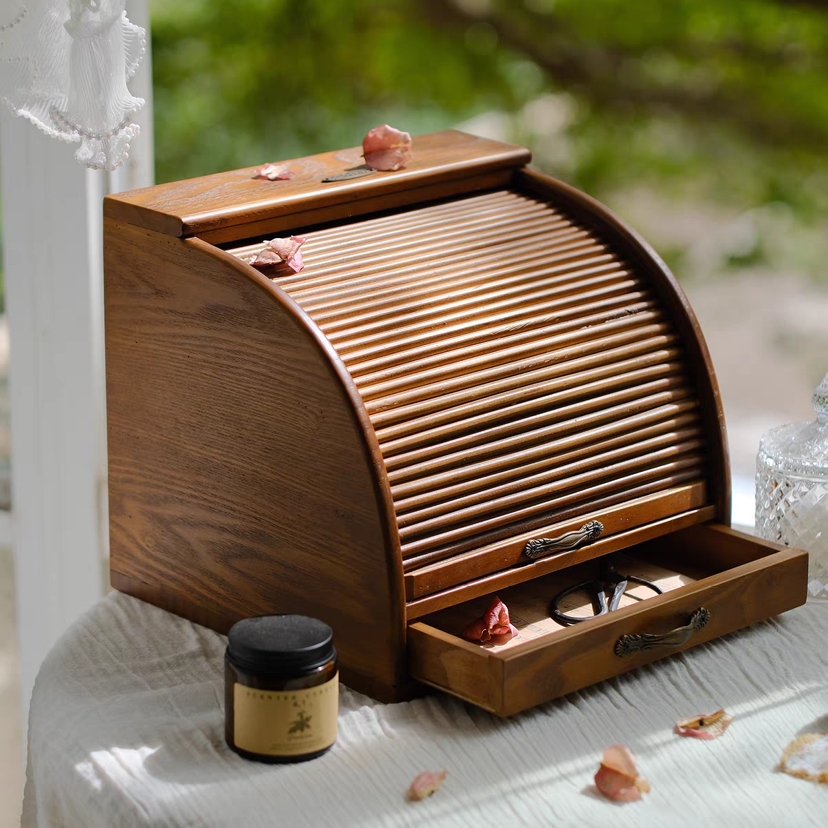 غطاء حماية (Roll-top Style): مزود بغطاء خشبي أنيق يحمي الأوراق من الغبار ويخفي الفوضى البصرية عند إغلاقه، ليتحول الصندوق إلى قطعة ديكور خشبية جميلة على المكتب.