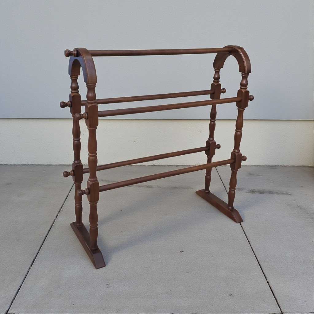 3 قضبان تعليق: يحتوي على ثلاثة عوارض خشبية أفقية بمستويات متباعدة قليلاً، مما يسمح بتعليق عدة مناشف أو بطانيات في وقت واحد مع ضمان تهوية جيدة بينها.