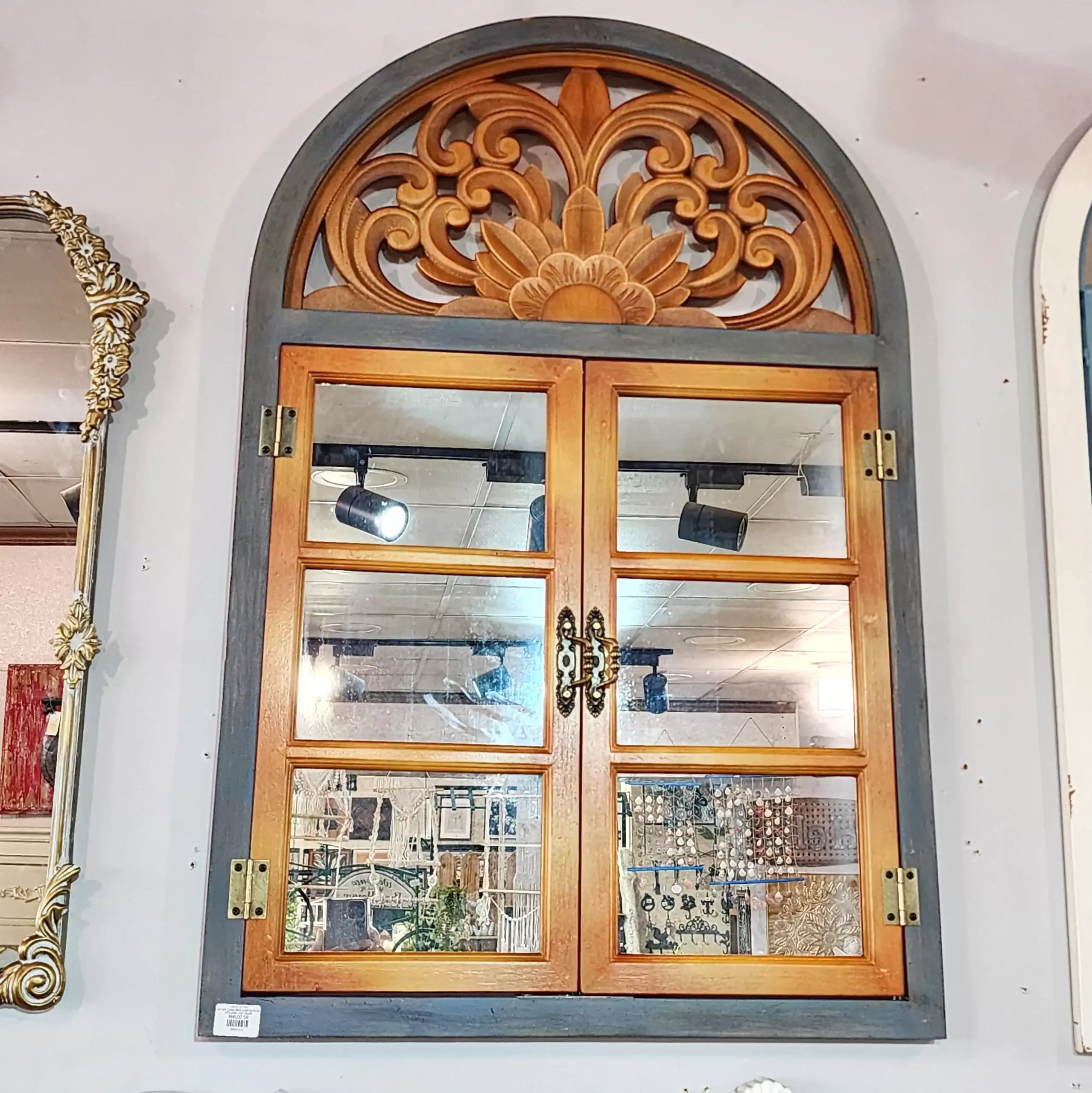 أضف لمسة فنية خالدة إلى جدران منزلك مع مرايا جدارية خشب مصممة ببراعة لتشبه النوافذ الخشبية التقليدية. تجمع هذه القطعة بين وظيفة المرآة في عكس الضوء وتوسيع المكان، وبين جمال اللوحات الفنية بفضل الزخرفة العلوية المنحوتة التي تبرز الطابع الكلاسيكي الراقي (Vintage Style).